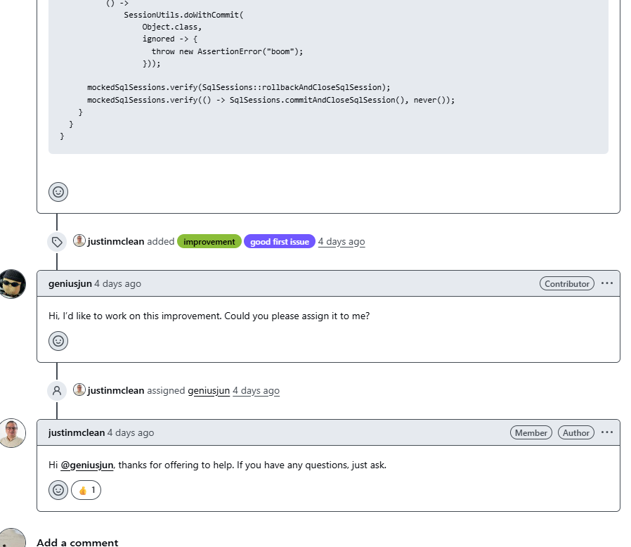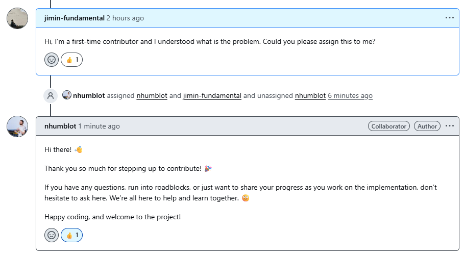 오픈소스 생태계에서는 작업 중복 방지 등을 이유로 이슈 해결 전 assign을 받는 문화가 있다.